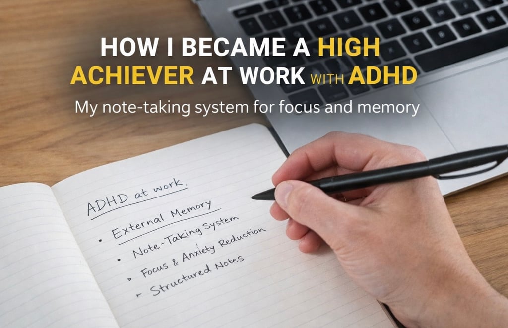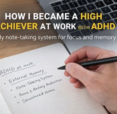 For years, I thought I had a learning problem. What I actually had was an ADHD retrieval problem. This article explores how strategic note-taking became my external memory system, helping me reduce performance anxiety, stay mentally grounded, and succeed professionally despite memory challenges. If you're a neurodivergent professional trying to build consistency at work, this may change how you think about productivity.